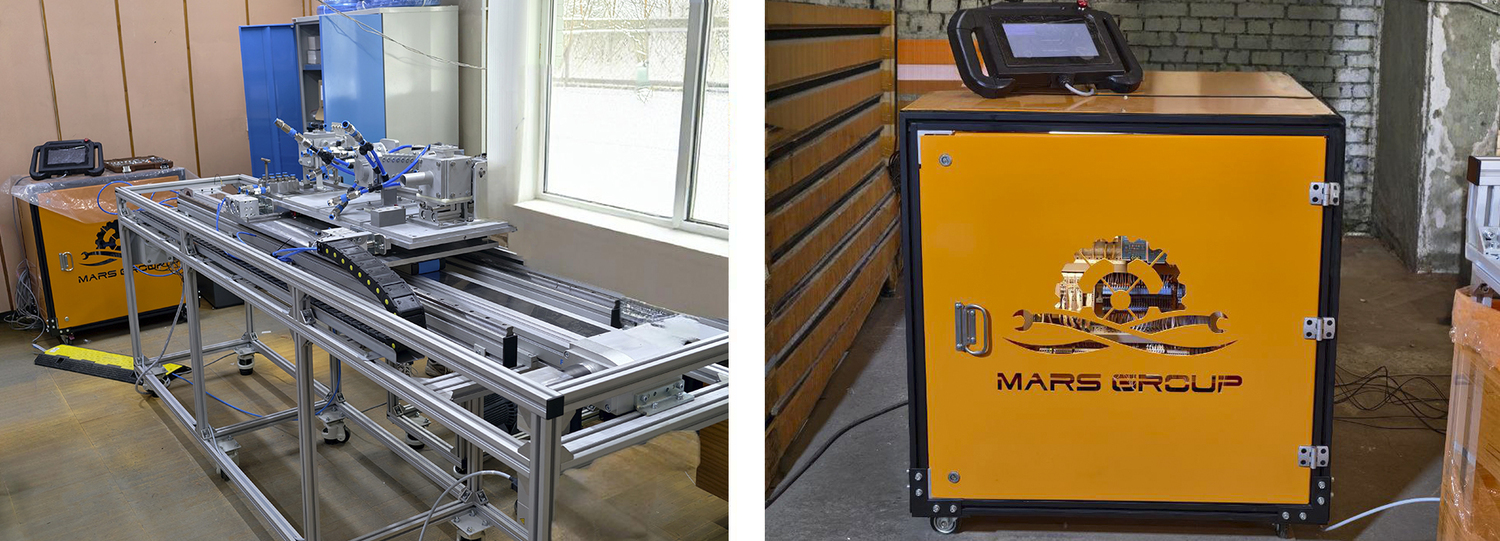 Двухкоординатная электромеханическая система перемещения включает в себя манипулятор дистанционной смены мишеней MGP.EGC-HD.CDPX10.SE и шкаф управления MGC.EGC-CDPX10. Компонентная база системы выполнена на оборудовании Festo.